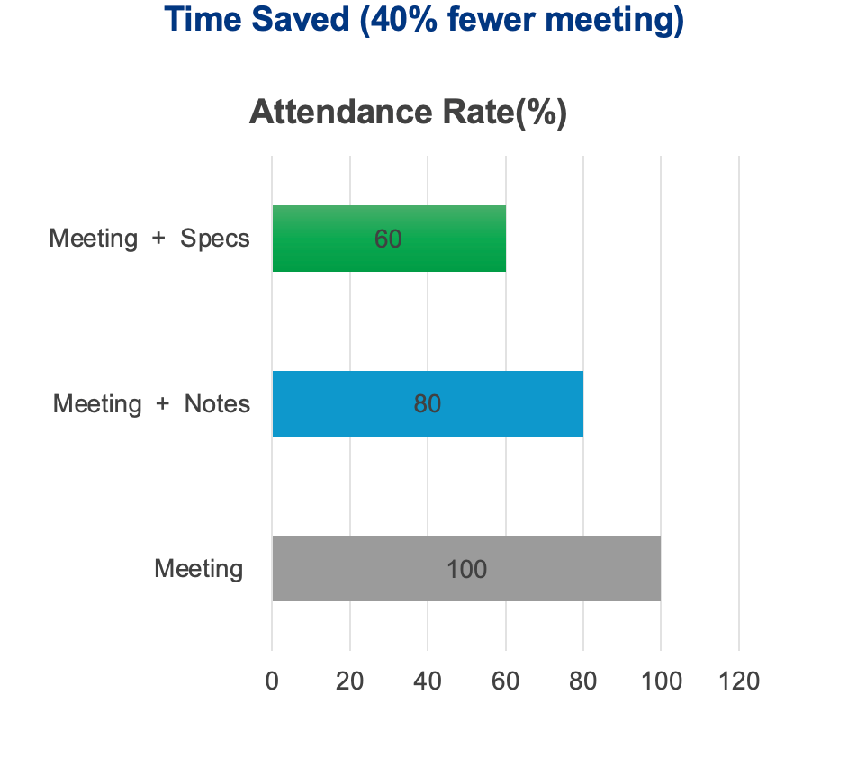 - Faster Iteration: Developers spend less time in “meeting tennis” with AI and more time on high-value tasks like system design, spec review, With structured specs, teams can cut 40% fewer meetings.