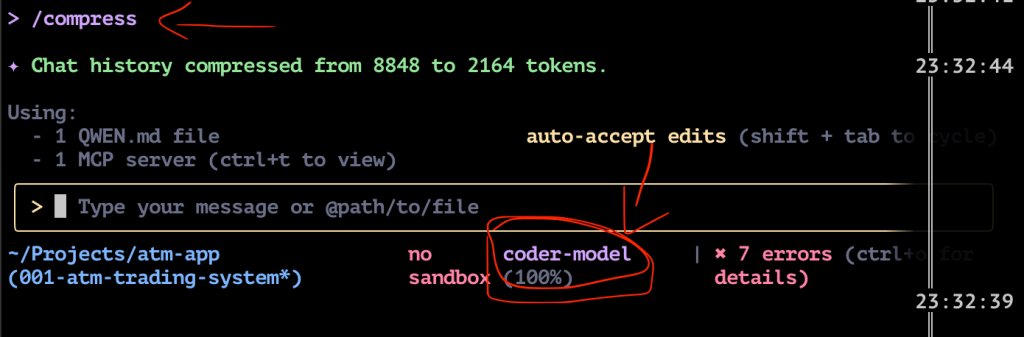 For example, in code cli tool, using compress command, the windows of context becames into 100% free.