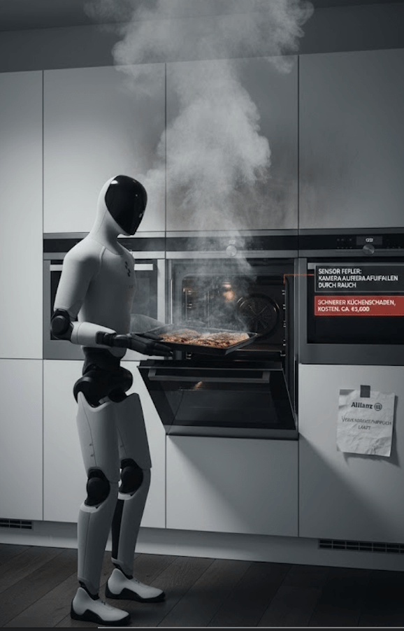 Use Case: In Germany, a Figure 03 humanoid robot cooking in a Miele kitchen lost its camera vision due to smoke from overcooking, causing serious damage to the kitchen.